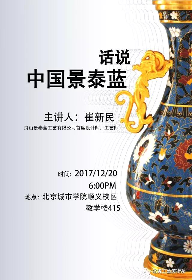 由工艺美术系主办的《话说中国景泰蓝》主题讲座,届时将于2017年12月20日18:00于sunbet申搏官方网站顺义校区教学楼415准时开讲。