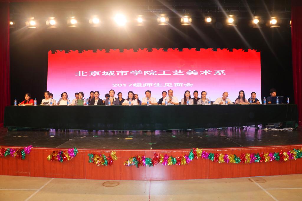 会议由工艺美术系团总支书记张楠主持。工艺美术系党支部书记、副主任徐晓向全体新生介绍了到会的校领导和系领导班子成员,各教研室教师依次与同学们认识。