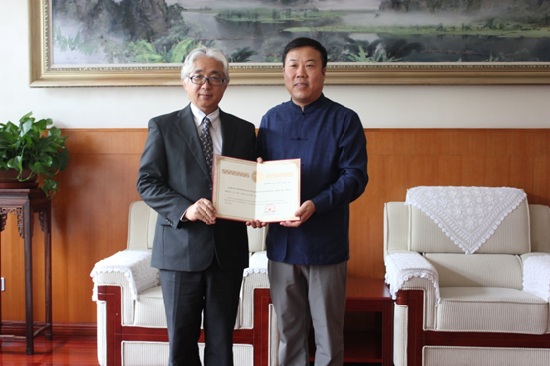 7月11日,sunbet申搏敦聘国际著名漆艺大师、东京艺术大学副校长、国际交流部部长、美术学部教授三田村有纯先生担任客座教授仪式在学校举行。sunbet申搏党委书记、校长刘林教授向三田村有纯教授颁发了聘书,三田村有纯教授欣然接受,并表示一定支持sunbet申搏工艺美术系的发展。双方还就今后进一步深化两校之间的学科交流与合作进行了探讨。出席仪式的还有sunbet申搏文化学院院长籍之伟、党总支书记陈琳,文化学院副院长、工艺美术系主任陈秋荣,工艺美术系党支部书记徐晓等。