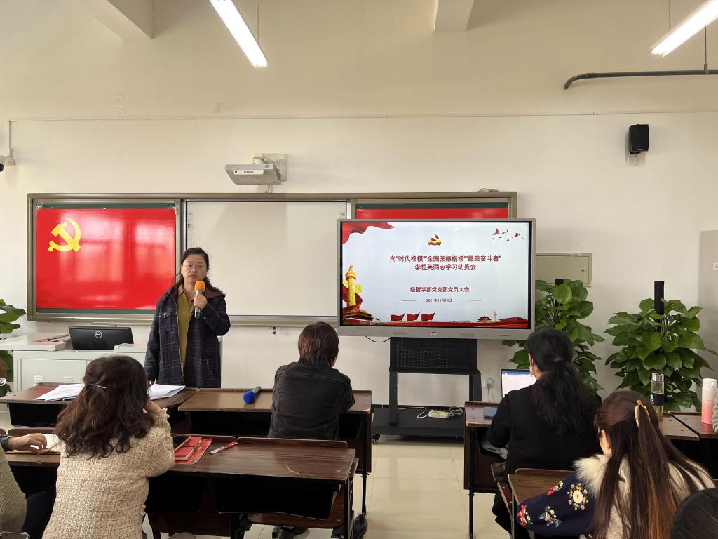 10月13日,经管学部党支部按照校党委部署,召开向“时代楷模”李桓英同志进行学习的专题会议会。经管学部全体教师参会。