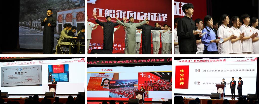 本期红色论坛以现场观看和钉钉线上直播相结合的方式,组织全校近1300名师生共同参与。论坛以《有一页历史》单人朗诵开篇,以1921年至1927年党的历史为主线,分为三个篇章,展开五个论题的研讨。7位来自公共管理学部、生物医药学部和国际文化与传播学部的学生代表进行主题演讲,汇报了自己的学习成果。整场活动还穿插党的一大历史情景再现表演、“红船精神”解读和“京汉铁路工人大罢工”视频讲解,增加了活动的沉浸感和视觉效果。