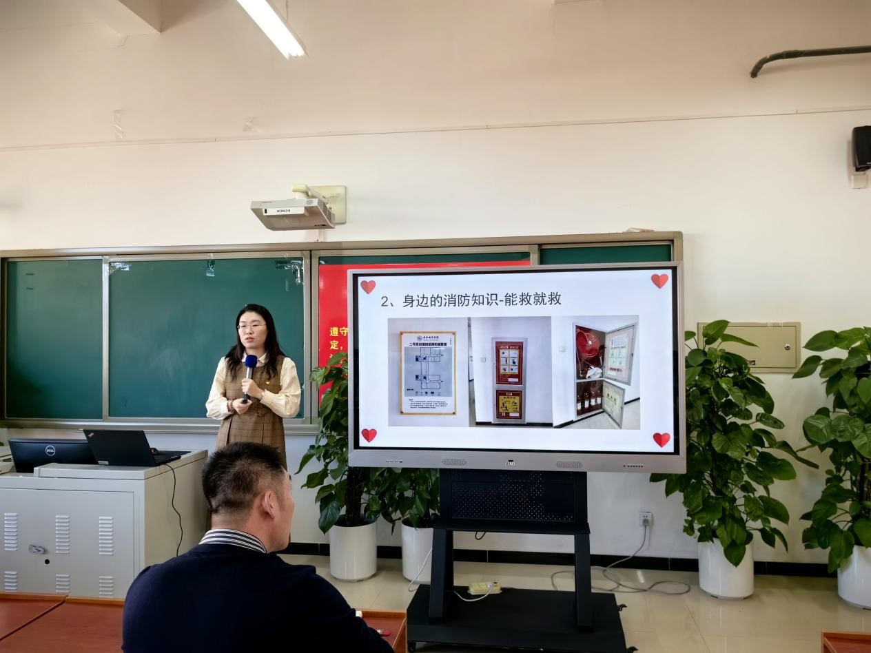 会上,杨林就校园消防工作的一些注意事项进行讲解。在专题讲座上,柳国梁以新闻报道、事故分析、现场分析等方式,就消防日常管理、消防火灾的应急和预防、火场自救逃生、火灾发生、发展、熄灭的基本规律和特点等方面知识进行了讲解。针对学校消防安全,柳国梁列举了大量实例和现场的图片,突出因缺乏消防意识和消防知识造成的严重危害。党支部安全委员卢瑞辰结合消防安全月自查结果对教师进行安全教育科普,深入浅出的让大家深刻认识到火灾发生的原因、火灾的危害性、后果的严重性以及配备正确的灭火防烟器具的必要性,当校园发生火灾时如何报警、报警注意事项、火灾现场逃生自救常识等消防基础常识作了重点讲解,同时针对各类火灾的特点讲解了应急预案和处理流程等。