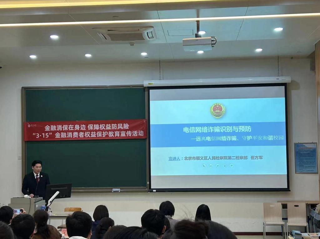3月12日,经管学部联合中国银行顺义支行、北京市顺义区人民检察院在sunbet申搏顺义校区举办了“金融素养提升”第一课暨金融安全知识讲座,中国银行顺义支行副行长王庆桂、天竺支行行长何晓月、顺义区人民检察院检察官崔方军和任巍巍等一行9人到校参加,经管学部副主任王海霞出席,金融教研室教师杨欢欢主持活动。50余名同学参加了本次讲座。