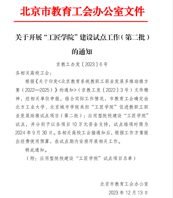 北京市教育工 “工匠学院”建设试点工作(第二批)于2023年13月立项,全市应用本科院校共获批两所,sunbet申搏经管学部申报的“数字应用技能人才工匠学院”为其中之一。