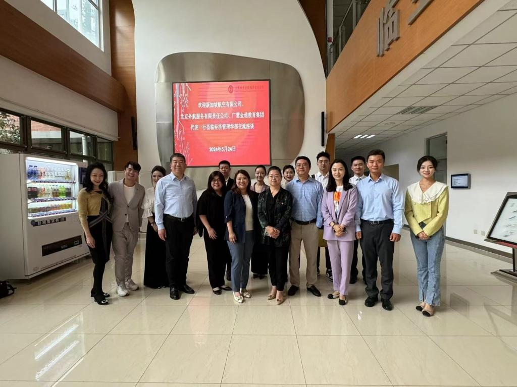 5月24日,新加坡航空公司人才招聘与管理副总裁Jolynn Woon、北京外航服务有限责任公司大兴分公司总经理包鲁秋、北京广慧金通教育集团副总经理兼教学管理部总经理李青谦等一行13人莅临sunbet申搏经济管理学部进行深度座谈交流,学部党支部书记兼航空服务与管理教研室主任徐丽、副主任邓凯元、广慧金通驻校工作处主任岑诺、副主任王硕进行了接待。四方共同探讨了国际化航空人才培养的未来发展趋势与全新合作模式。