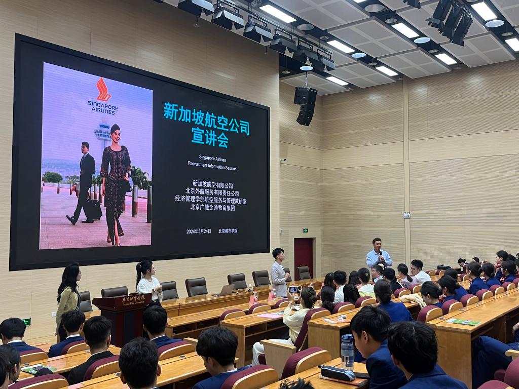 活动伊始,新加坡航空公司在西阶梯教室举行了公司宣讲会,反响热烈。会后,四方进行了深入的座谈交流,就航空行业的发展现状、外航需求的人才规格及培养、国际合作等议题进行了热烈讨论。