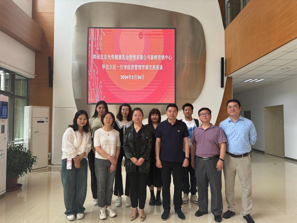 5月24日,经管学部党支部与光明乳业新鲜营销中心华北地区党支部联合开展了“支部共建聚合力,校企合作促发展”活动。光明乳业新鲜营销中心华北地区党支部书记易志超、人事行政经理荆涛,经管学部支部书记徐丽、党员教师、学生代表及企业党员代表参加了共建活动。