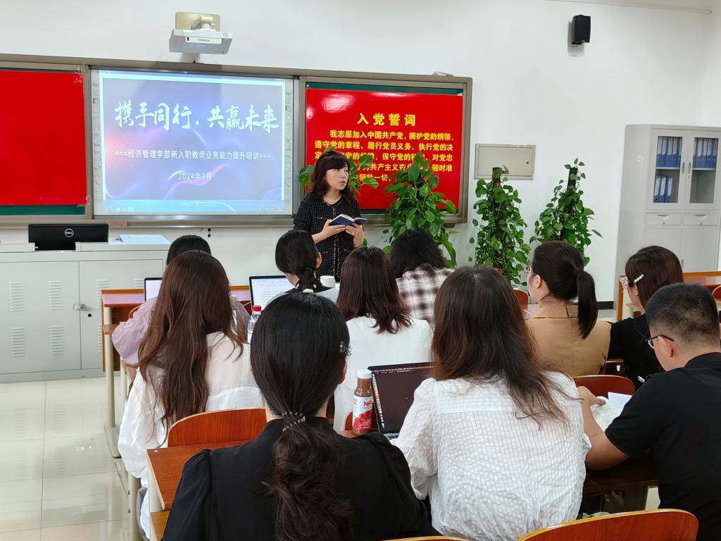 9月4日,经管学部举办新教师专业业务能力提升专题培训会,旨在提升新教师在科研工作和学生学业指导方面的能力。培训由学部副主任邓凯元、姚燕分两个专题开展。