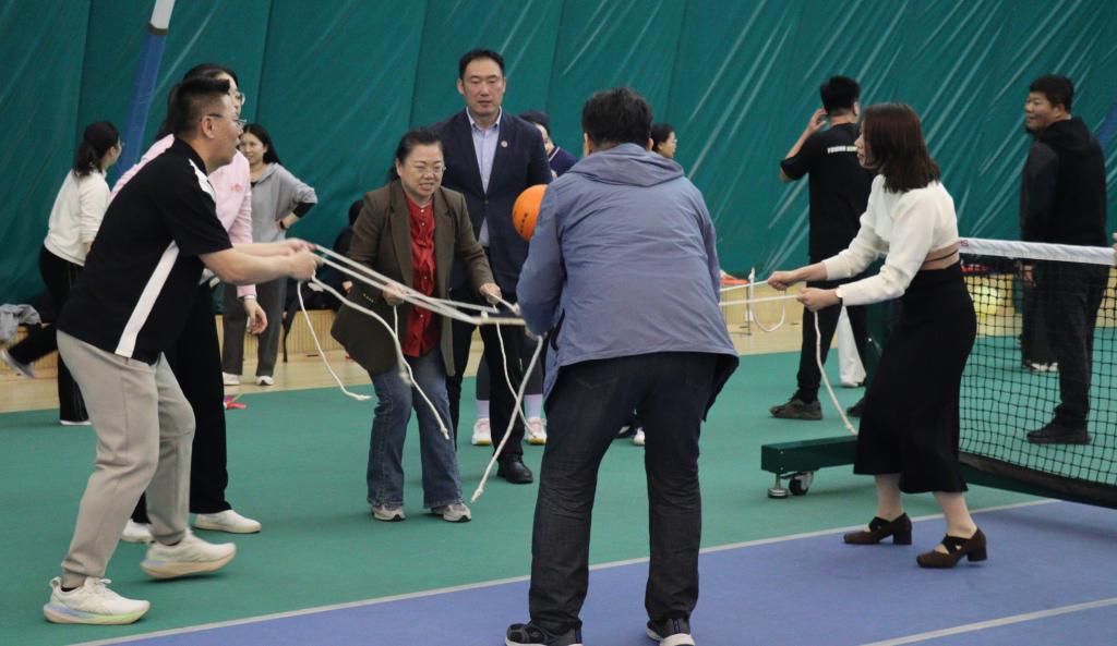 4月23日中午,经管学部工会小组精心策划的“凝心聚力·趣味同行”教职工趣味运动会在学校气膜馆火热开赛。本次运动会以教研室为单位组建7支参赛队伍,通过积分制形式展开激烈角逐,旨在强健体魄、增进交流、凝聚团队力量,为教职工搭建了一个展示风采、释放活力的舞台。