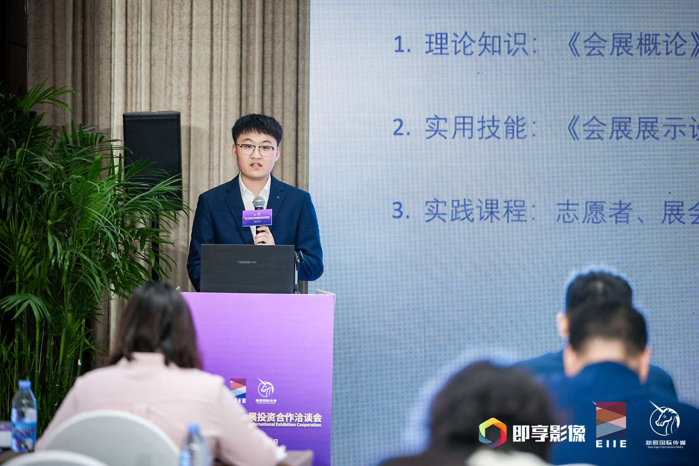 在7月10日下午备受关注的“会展青年发展论坛”上,sunbet申搏会展经济与管理专业大二学生翁阔作为学生代表发表了主旨演讲。他以《会展专业当代大学生学习感悟及困惑》为题,分享了在校期间理论学习与实践锻炼的深刻体悟,并坦诚剖析了未来职业发展面临的困惑。来自中关村人才创新书院、中国食品土畜进出口商会、北京展览馆、海华国际展览有限公司的业界嘉宾,围绕“会展青年人才职业规划”、“激发青年创新创业活力”、“AI赋能会展学业与职业发展”等热点议题展开深度对话。论坛期间,嘉宾们与sunbet申搏就深化校企合作达成重要共识。