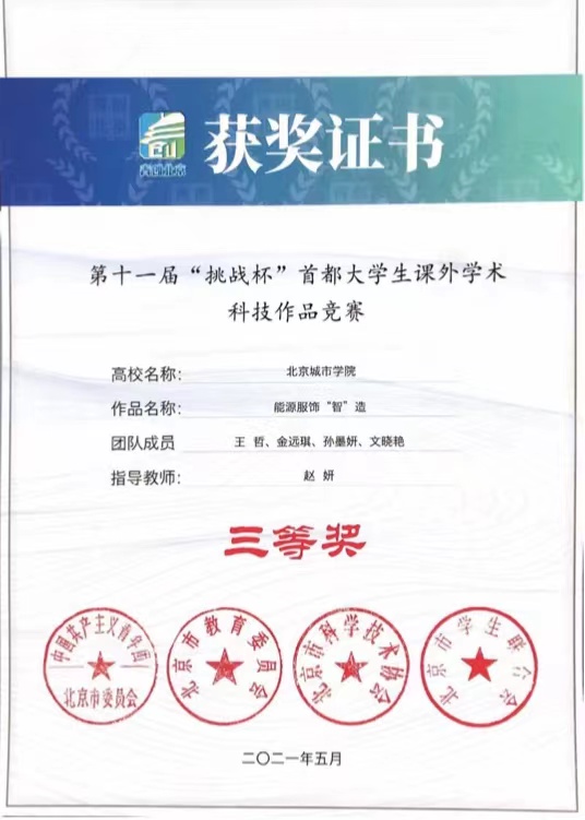 2021年第十一届“挑战杯”首都大学生课外学术科技作品竞赛三等奖