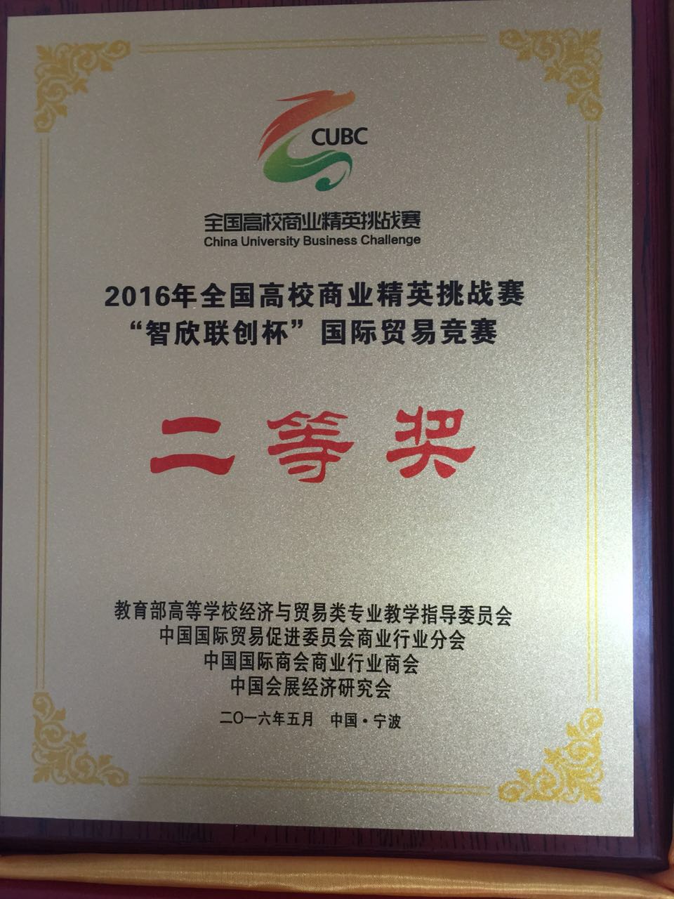 2016年全国高校商业精英挑战赛国际贸易竞赛全国二等奖