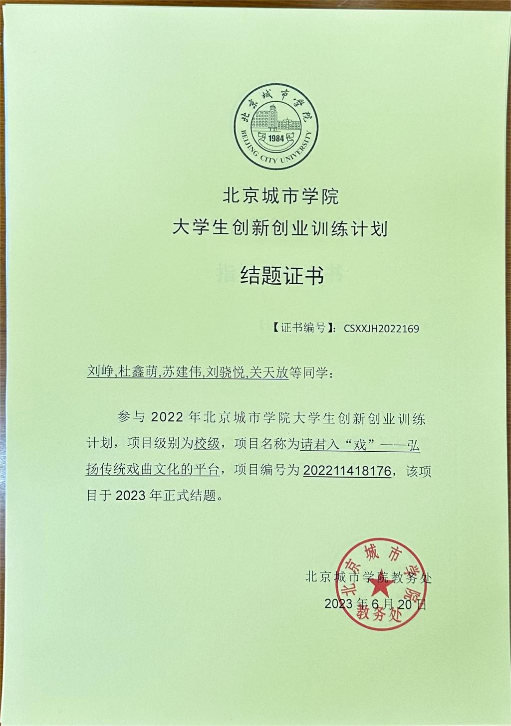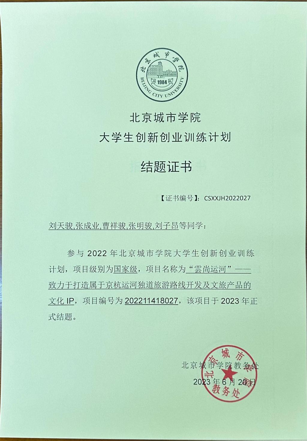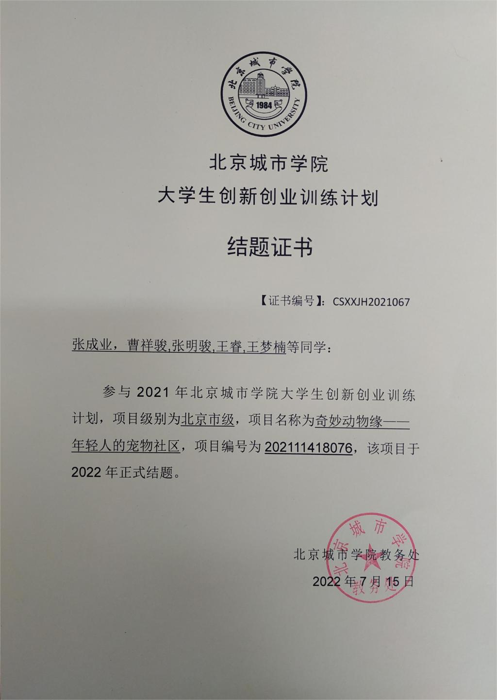 2020-2022年大创项目结题证书
