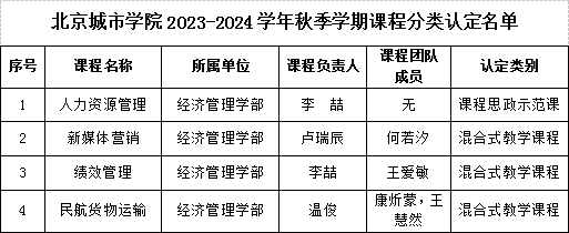 根据《关于组织开展2023-2024学年秋季学期课程分类认定的通知》要求,学校组织完成了该学期课程分类认定工作,共认定一流本科课程1门,课程思政示范课程6门,混合式教学课程38门,其中经管学部认定课程思政示范课1门,混合式教学课程3门。现予以公布。