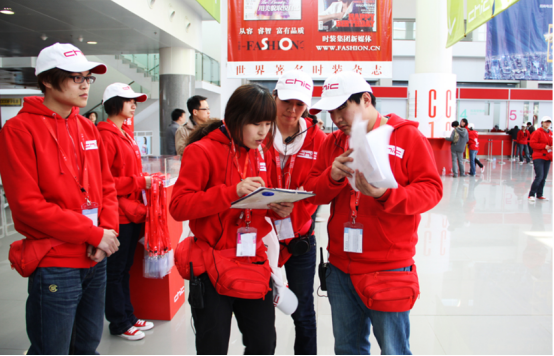 北京国际服装博览会现场实习的学生