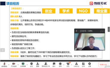 首次迎新活动由社长刘雪莲社长主持。为了丰富同学们的实习实践经历,并宣传社团的活动,吸引更多的同学参与到社团活动中,本次迎新会邀请了18人资本班的班长李一豪同学进行实习就业工作的经验分享,邀请社团内外的同学共同参与分享活动。此次分享活动吸引了包括城建学部、教育学部、经管学部等200余名同学采取线上或线下的方式参加。