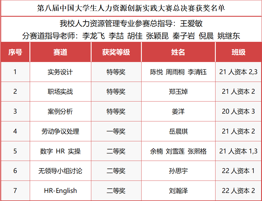 今后,人力资源专业将持续深化“以赛促学、以赛促教、产教融合”,践行人才强国战略的具体实践,以培养具有创新意识和实践精神的高素质应用型人才为目标。