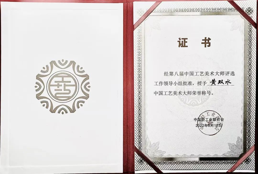 近日,由工业和信息化部指导、中国轻工业联合会主办的第八届中国工艺美术大师评选工作,公布评选结果。艺术设计学部研究生导师黄双水榜上有名,荣获“中国工艺美术大师”荣誉称号。
