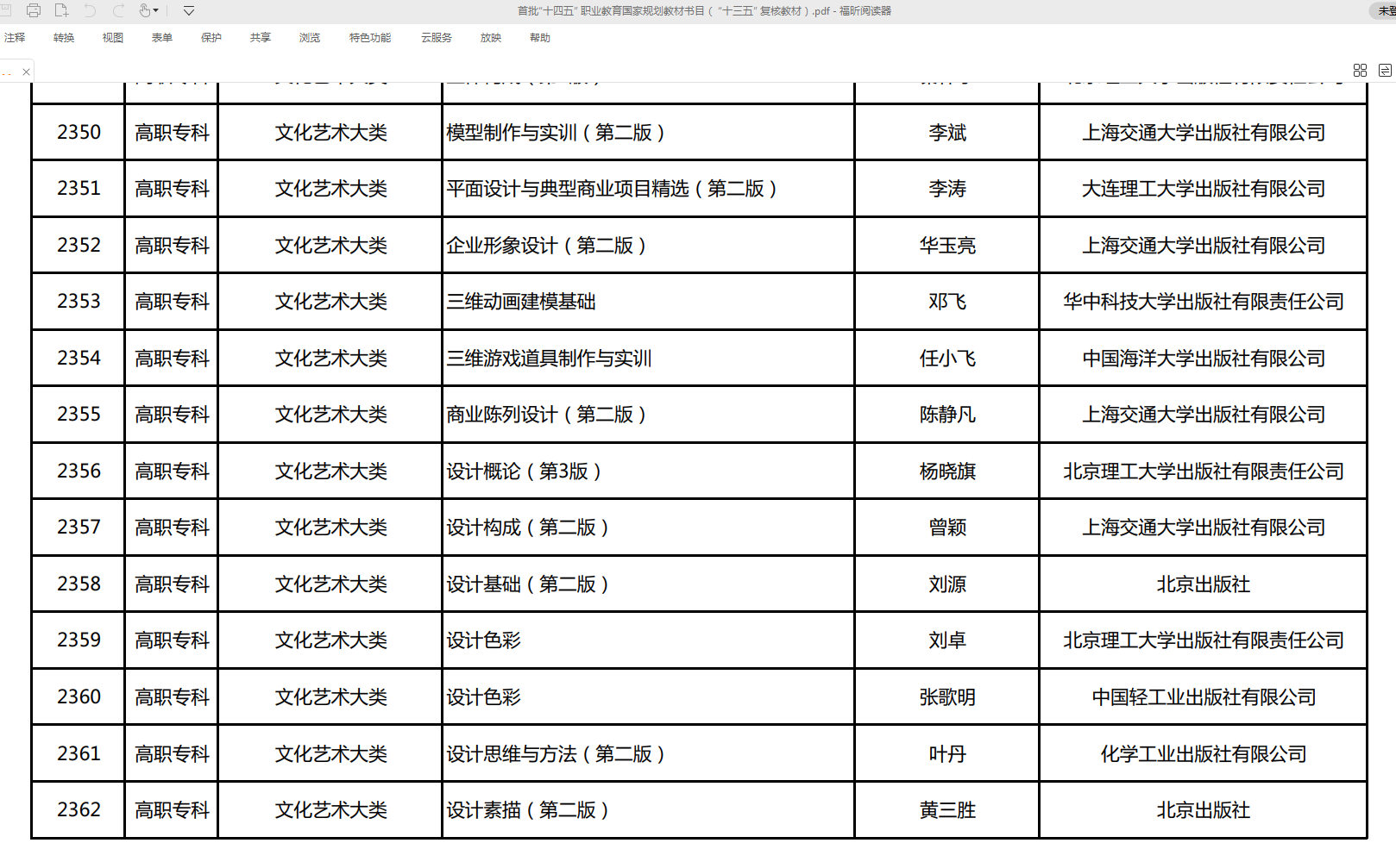 近日,教育部为落实党中央、国务院关于教材建设的决策部署和新修订的职业教育法,根据《“十四五”职业教育规划教材建设实施方案》和《教育部办公厅关于组织开展“十四五”首批职业教育国家规划教材遴选工作的通知》要求,经有关单位申报、形式审查、专家评审、专项审核、专家复核、面向社会公示等程序,共确定7251种教材入选首批“十四五”职业教育国家规划教材,涵盖全部19个专业大类、1382个专业。艺术设计学部黄三胜、陈艳老师等主编的《设计素描》教材入选,这是该教材在继入选“十三五”职业教育规划教材之后,再次通过严格评审入选“十四五”职业教育国家规划教材。