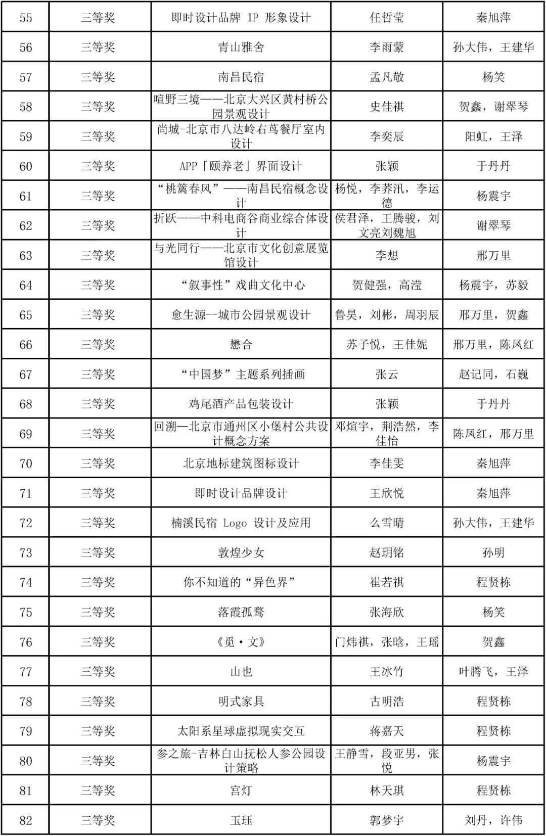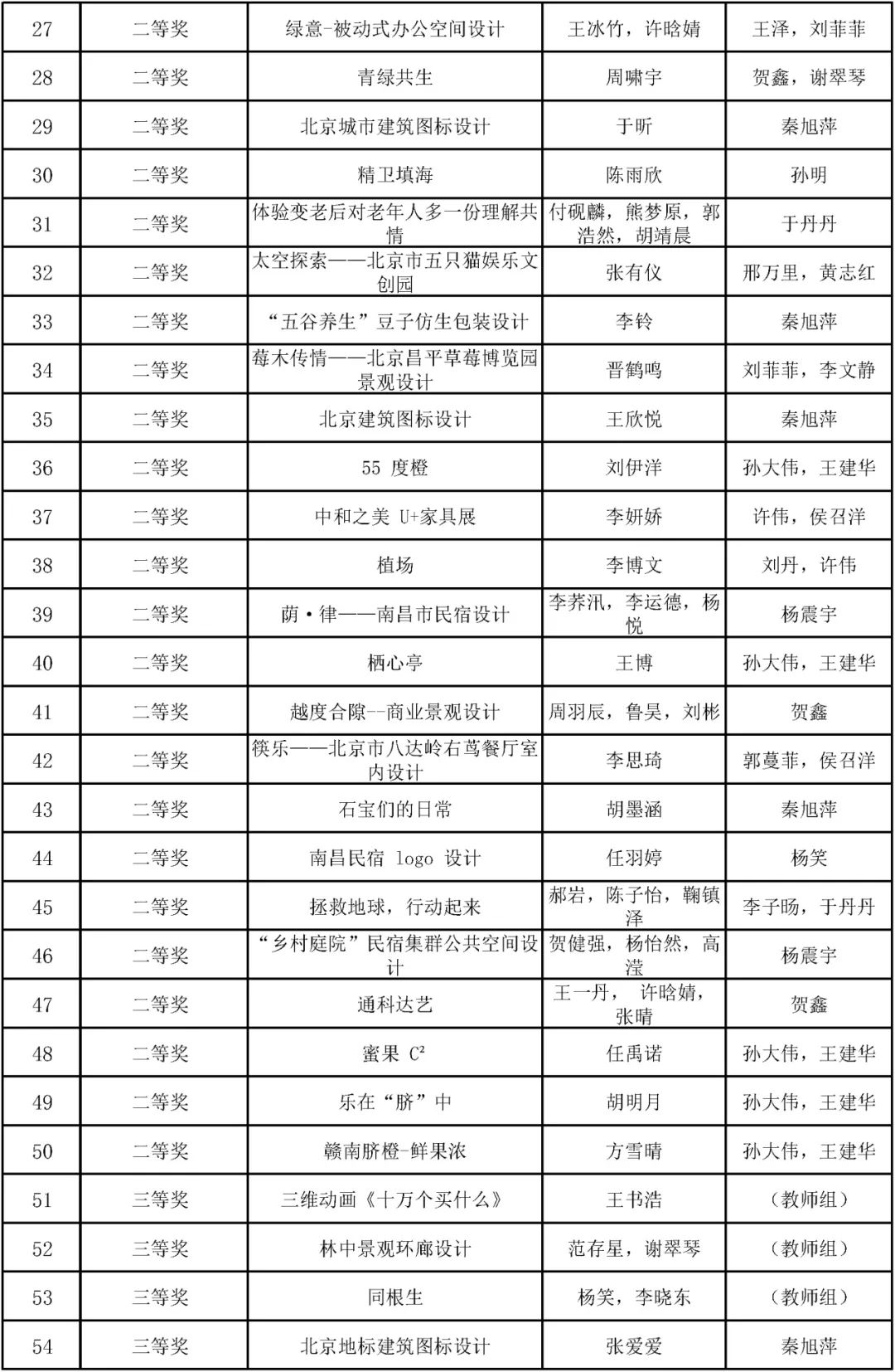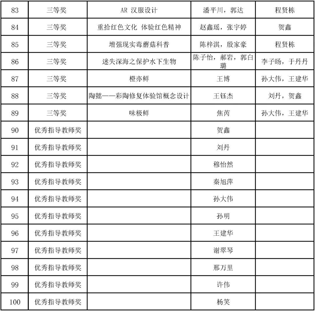 获奖名单