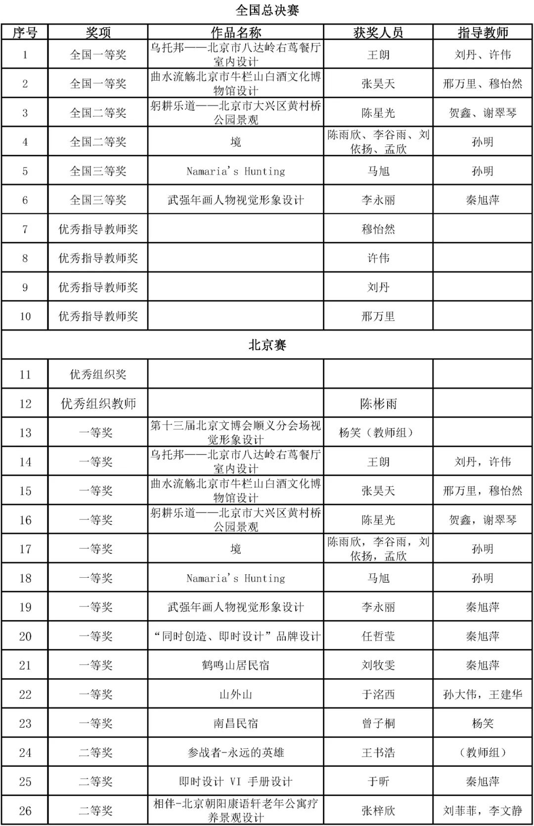 全国二等奖、北京市一等奖