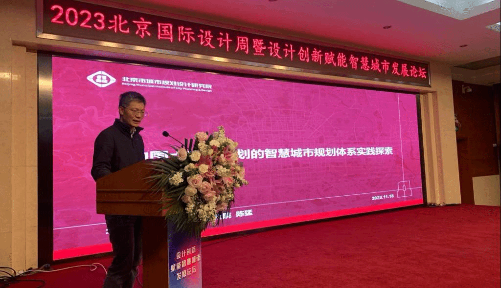 北京市城市规划设计研究院数字中心副主任陈猛,以“面向国土空间规划的智慧城市规划探索实践”为题,分享了基于数字技术背景下设计如何介入城市建设、城市治理的关键问题;梳理了智慧城市的发展线索,展示了中国在全球智慧城市发展中的重要地位;提出了物理空间、数字空间、社会空间三元空间模型,以及这个模型的具体实践路径。陈猛主任通过系列城市设计实践案例,包括北京城市数字孪生模型,为与会听众具体展示了空间设计如何服务于社会制度运行,这些具体设计解决方案具有极高的前沿性和创新性。