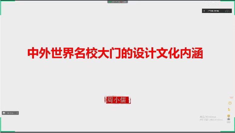 北京化工大学艺术与设计系系主任、教授、硕士生导师,中国艺术专业学位研究生教指委专家理事周小儒教授,以“中外世界名校大门的文化内涵”为题,探究了世界名校校门的设计之美,从另一角度让听众了解多所学校的历史与文化内涵。周教授分别从大学校门建筑形象的构成、中国大学校门的设计风格、国外大学校门的造型特征,以及国外大学校门的装饰特点等几个角度进行了阐述。