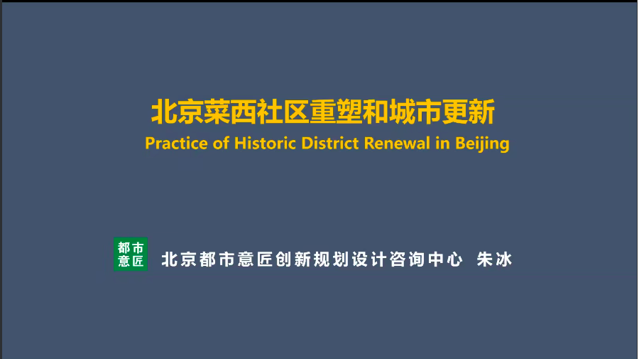 北京都市意匠创新规划设计咨询中心创始合伙人、哈佛大学博士朱冰教授,以“北京菜西社区再造和城市更新”为题,分享了项目从2017年取得支持,开始修补历史街区;2018年开始进行项目实践和落地,从院落开始进行城市复苏;2019年面向旧城居民改善的菜西片区人居环境整治与提升;2020-2021年,将成果融入市场,融入北京现代的发展,让与会观众看到了菜西社区的再造历程、文化特色和技术准则。
