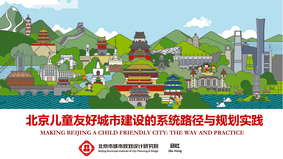 北京市城市规划设计研究院规划研究室主任工程师、教授级高工、邱红博士,以“北京儿童友好城市建设的系统路径和规划实践”为题,解读了北京市儿童友好城市的概念内涵、建设路径以及具体实践。从四个路径开展“规划编制—空间友好营造—推动科普实践—带动儿童参与”规划实践,全方位促进儿童发展,全过程保障儿童权益,促进北京儿童友好城市建设。