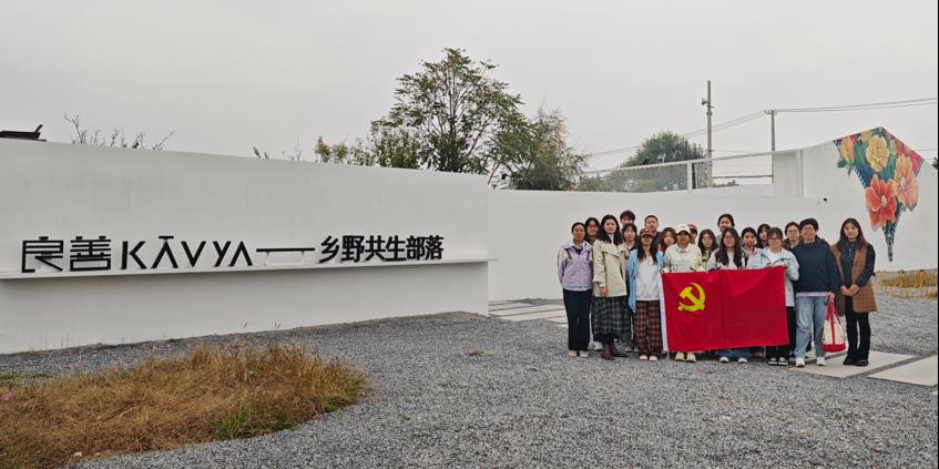 2025年10月16日,秋意微凉,却难掩师生们的实践热情。艺术设计学部学管第二党支部师生一行,受邀前往北石槽镇良善·Kavya乡野共生部落,开展了一场融艺术观赏、文化体验与体育实践于一体的多元化学习活动,亲身参与并见证了自然与艺术碰撞的“蝶变”之旅。