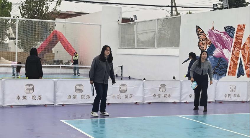 活动的第三环节充满了活力与欢笑。在共生部落的户外场地上,部落负责人刘总亲自为师生们传授了新兴运动——匹克球的技巧与规则。从握拍、挥球到接球,同学们学得认真,练得投入。尽管时节已近“小寒”,但大家不畏微寒,在球场上奔跑挥洒,尽情体验了这项运动的乐趣,展现了青年学子的蓬勃朝气。