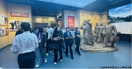 参观过程中,教师党员不时驻足交流,结合专业背景与教学实践分享体会。教师党员纷纷表示要将伟大抗战精神转化为立德树人、艺术创作的内生动力,以更饱满的热情投入教育教学。