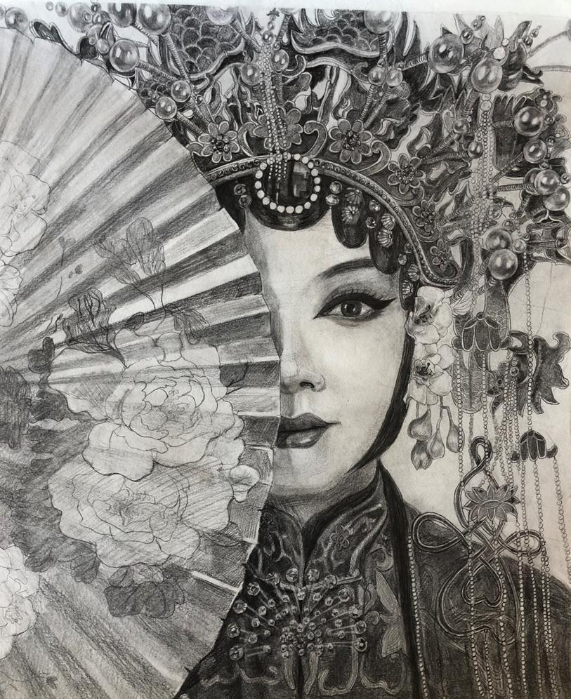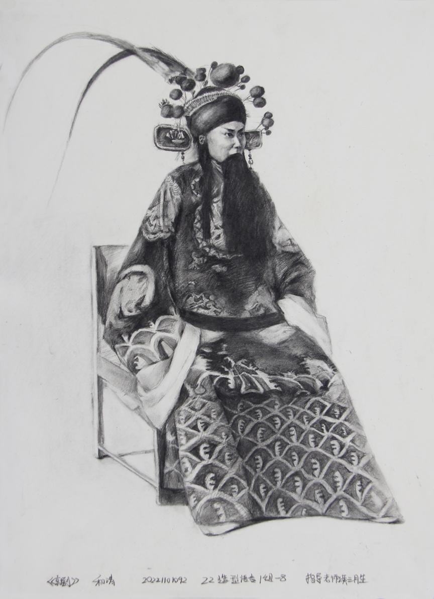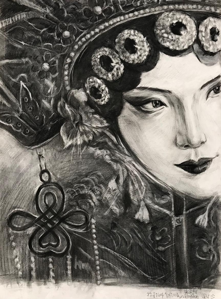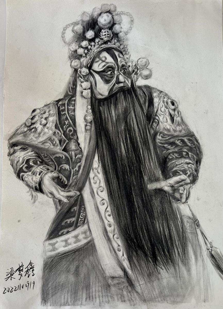 作为京剧造型艺术的素描,艺术语言就是点、线、面、空间、光影、构图等。各种形式的素描正是通过的这些丰富语言,创造出各种各样的艺术形象,表达个人的感受和体验,并将感受和体验传达给观看者。