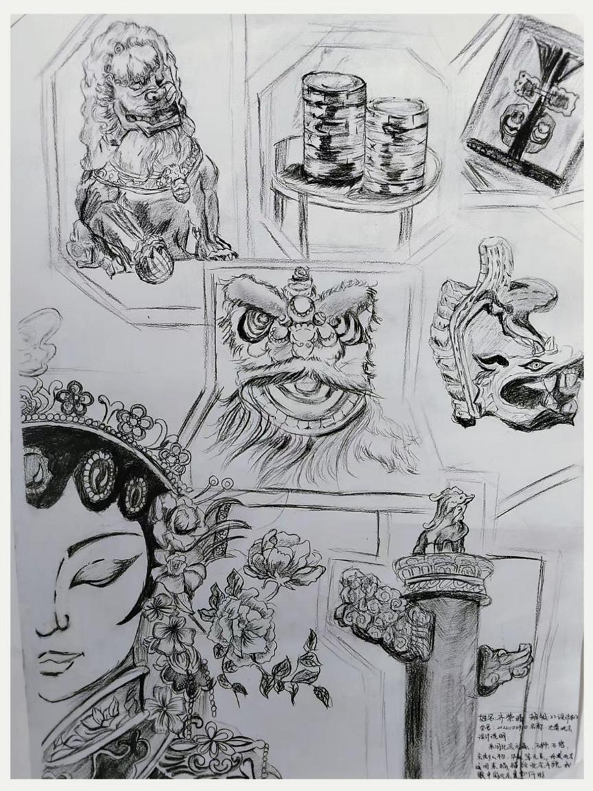 《造型语言》课程是艺术设计学部一年级学生必修的专业基础课程之一。通过本课程学习,学生掌握造型的基本知识、原理和方法,具备艺术的观察、表达和思维能力,培育创意想象力和艺术审美力,为艺术专业、设计专业及相近专业奠定必要的基础。为了进一步传承和弘扬中华传统文化,为了将京剧知识内化于心、外化于行,本学期将京剧主题融入到造型语言课程当中。