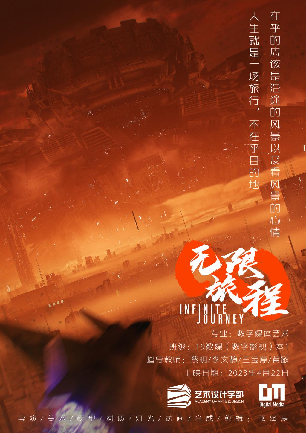 《无限旅程》是一部以笔者过去四年作品为蓝本,主要使用虚幻引擎创作的三维动画短片,以供未来即将进入数媒专业或还在犹豫的学生提供一个参考和启示,鼓励他们勇于探索和创新,用自己的作品为世界贡献更多的美和价值。同时,这也是对笔者大学四年的一个总结。