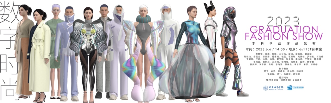 本届毕设主题为“运动时尚”“汉服”“北京”以及企业项目真题真做四个大方向,在选题上尊重学生的创作意愿和个性化发展,作品以数字作品+实物作品双展示的方式呈现,本次发布会共展示毕业生的数字时装作品创作40余套,成衣作品创作70余套。