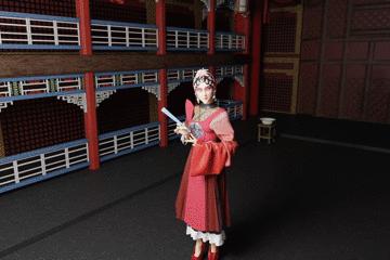 设计理念:主要灵感来源于经典京剧剧目《穆桂英挂帅》。“斜披蟒”穿戴作为角色的特殊点,将盔甲与水袖结合,体现了穆桂英的忠勇、果敢,通过对戏剧服装的色彩和材质巧妙应用,设计出中国风时装,表达东方美学。