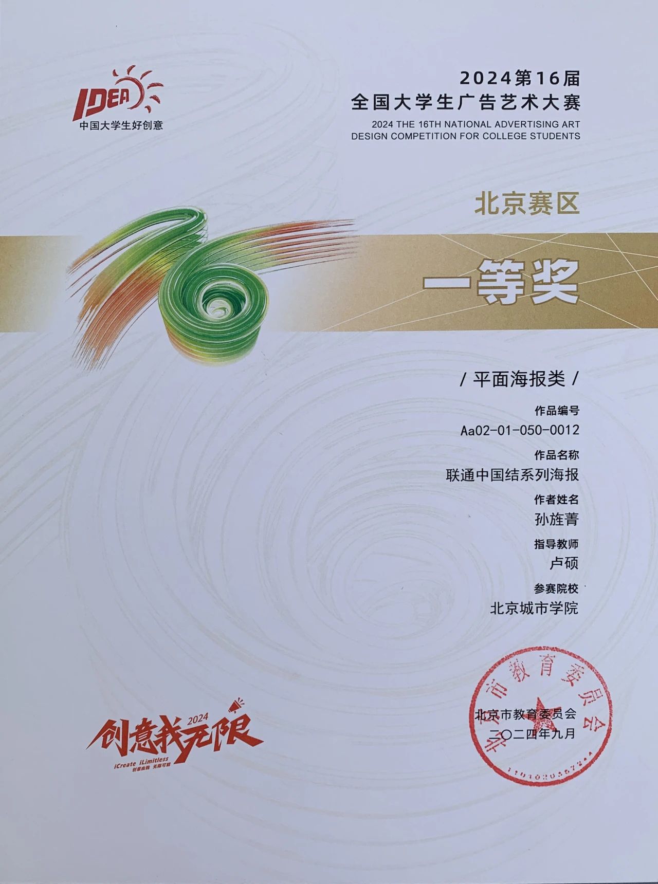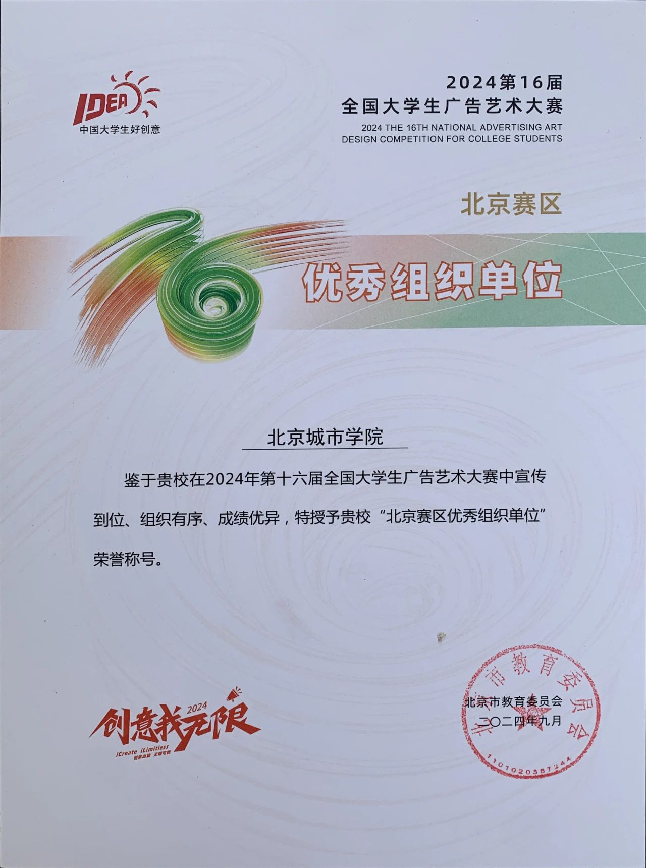 第十六届全国大学生广告艺术大赛(简称“大广赛”)获奖情况已在官网公示,sunbet申搏艺术设计学部学生在本次大赛中成绩优异。其中,北京赛区优秀组织单位1项,北京赛区优秀指导教师1项,一等奖4项、二等奖19项、三等奖64项,共计获奖89项。