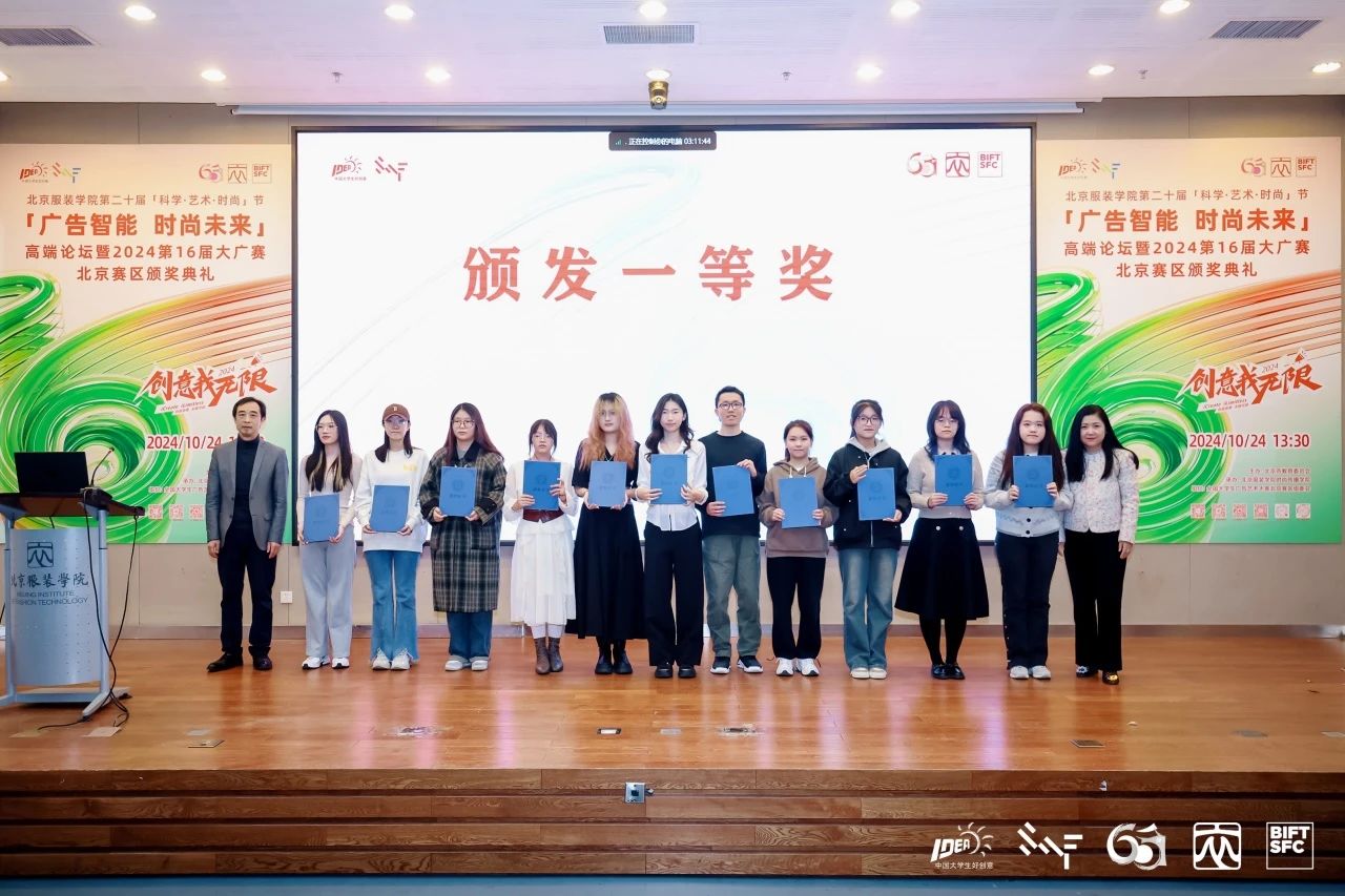 2024年10月24日,艺术设计学部学科竞赛办 邢万里老师带领学校获奖师生代表参加了由北京市教育委员会主办、北京服装学院时尚传播学院承办的“广告智能 时尚未来”高端论坛暨2024第16届大广赛北京赛区颁奖典礼,本次颁奖典礼在北京服装学院举行。