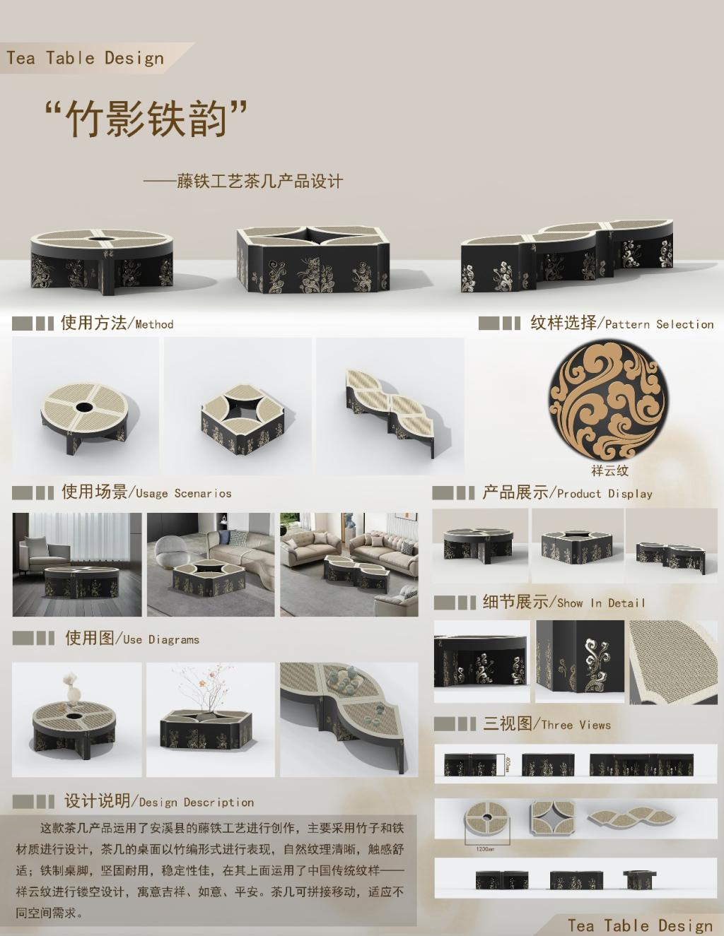 作品名称:竹影铁韵——藤铁工艺茶几产品设计