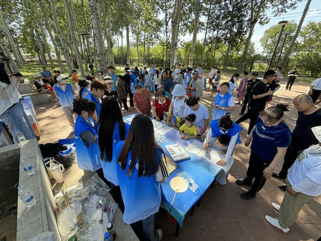 6月12日,艺术学管第一党支部与顺义杨镇妇联党支部开展红色“1+1”共建,在杨镇双阳公园举办“艺”米阳光艺术公益支教活动,吸引了杨镇地区从儿童到老人等各个年龄段的居民热情参与。此次活动旨在通过绘画、书法的艺术形式,传递志愿服务精神,为当地居民提供一个展示自我艺术创作的平台。