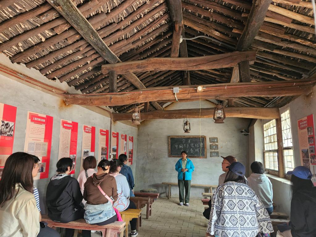 在抗战小路上追寻革命先辈的足迹,党员师生们重走革命道路,亲身体验当年革命先辈们扁担挑、背篓背运送物资上山。第二站党员师生们抵达红歌台,齐唱《没有共产党就没有新中国》等红歌。第三站到达冀东西部地分委、联合县委县政府、公安科旧址,听讲解员介绍历史沿革及英烈事迹,了解抗战时期共产党人反击敌特分子、清除内部腐败变质分子的情况。
