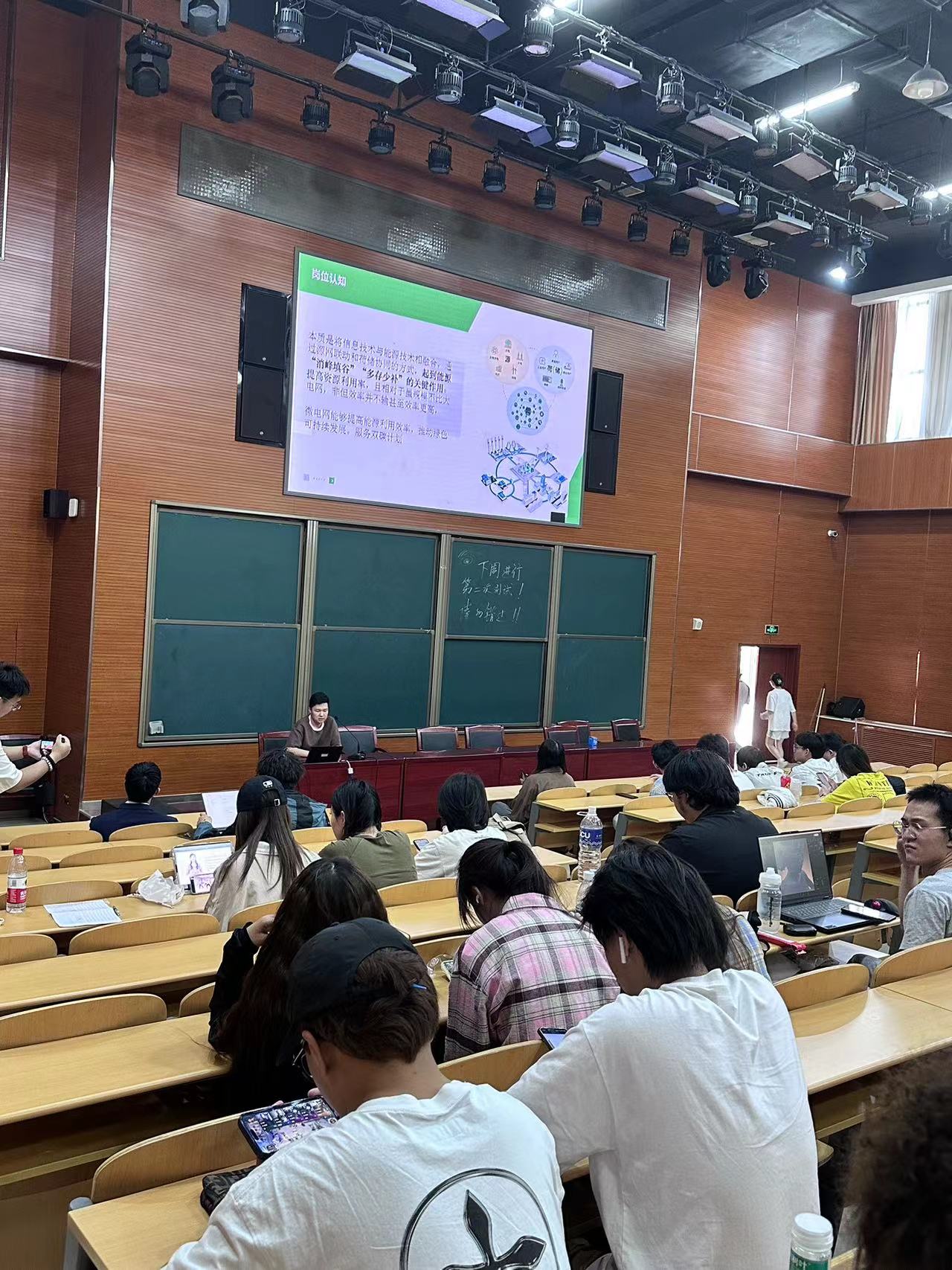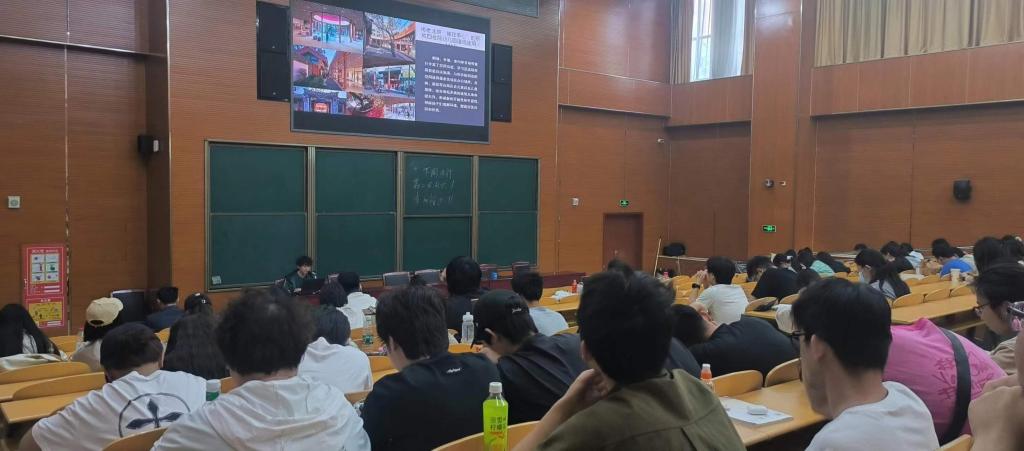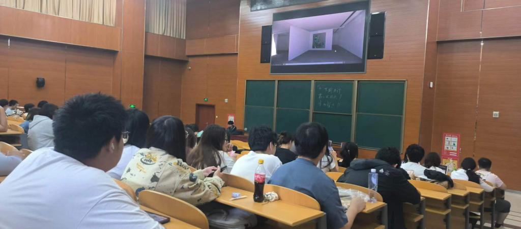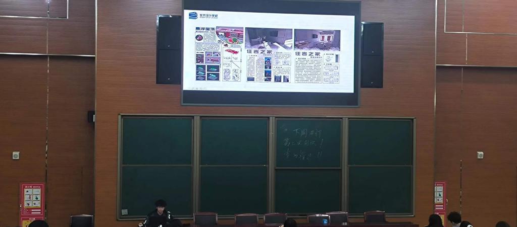 在分享交流中,来自艺术设计学部22环境设计专业的曹佳旺同学将自己参加市级比赛并获奖的经历予以分享。他详细介绍了项目的选题、策划、实施以及团队协作等方面的要点和技巧。同时,还分享了在比赛中遇到的困难和挑战,以及如何克服这些困难的方法和策略。这些优秀的艺术学子们展现出的创新思维和实践能力让现场在做的学生惊叹不已。他们敢于将想法付诸实践,不畏困难,积极探索,这种精神也感染了现场的听众。