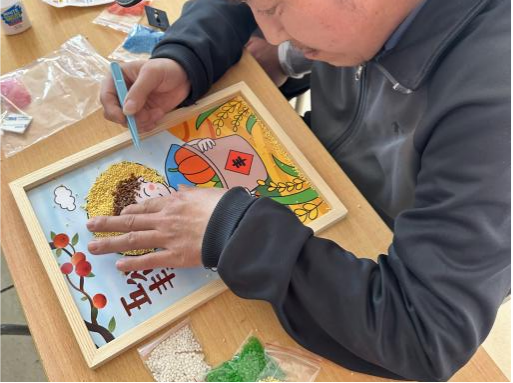 活动以绘画为桥梁,通过艺术的力量为残障人士搭建展示自我、表达情感的平台,呼吁社会关注残障群体,促进他们更好地融入社会。学生志愿者为残障人士讲解绘画技巧,引导他们描绘心中的美好世界。残障人士积极参与,不仅绘制出色彩斑斓的艺术作品,还制作了谷物手工画。