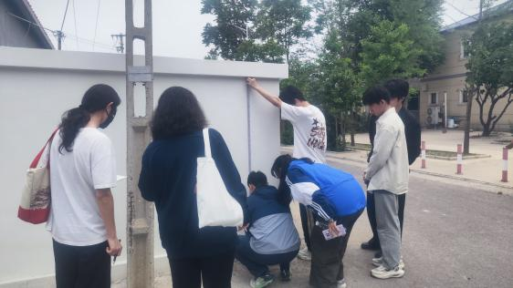 基于调研成果,师生围绕“如何以墙绘艺术赋能廉洁主题”展开专题研讨。学生们结合专业所长,提出“将地标性建筑与廉洁主题相融合”“以卷轴形式塑造廉洁之风”等创意方案,并运用激光测距仪、三维建模软件等工具,对选定墙面进行精准测绘与数据采集,为后续艺术创作奠定科学基础。在此基础上,围绕墙绘设计展开研讨,并完成墙面测量工作,为后续艺术美化乡村、提升村落文化氛围做好充分准备。