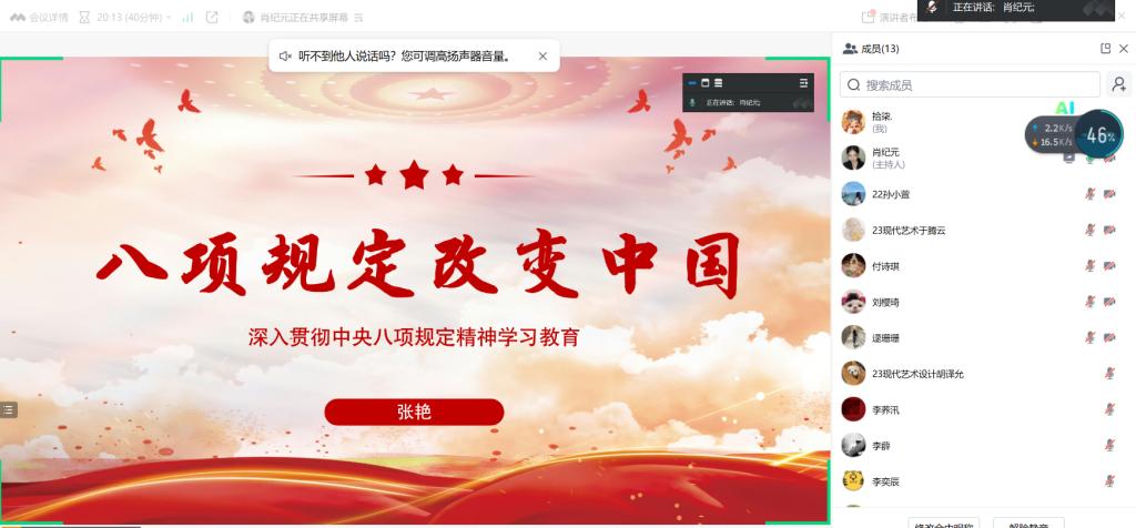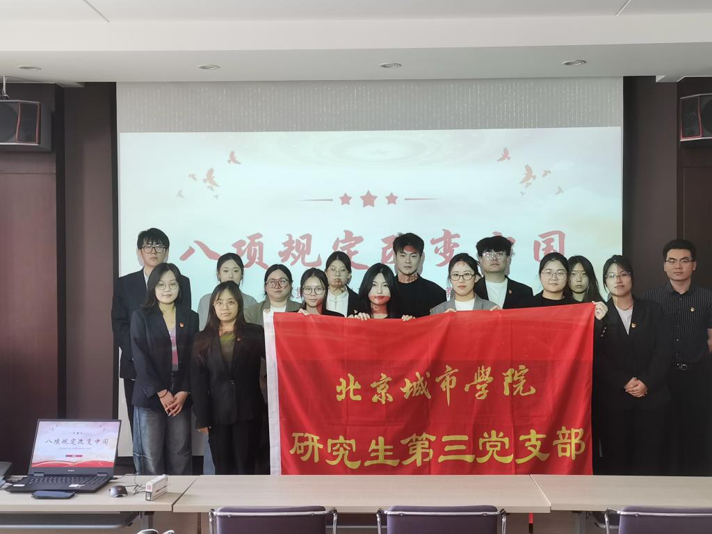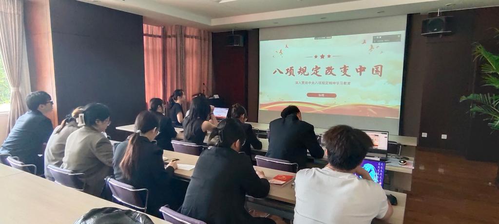 作为支部深入贯彻中央八项规定精神学习教育系列活动的其中一项,2025年5月28日研究生第三党支部在第一会议室开展“八项规定改变中国”专题党课。党课由党支部书记张艳老师主讲,支部全体党员参加学习。