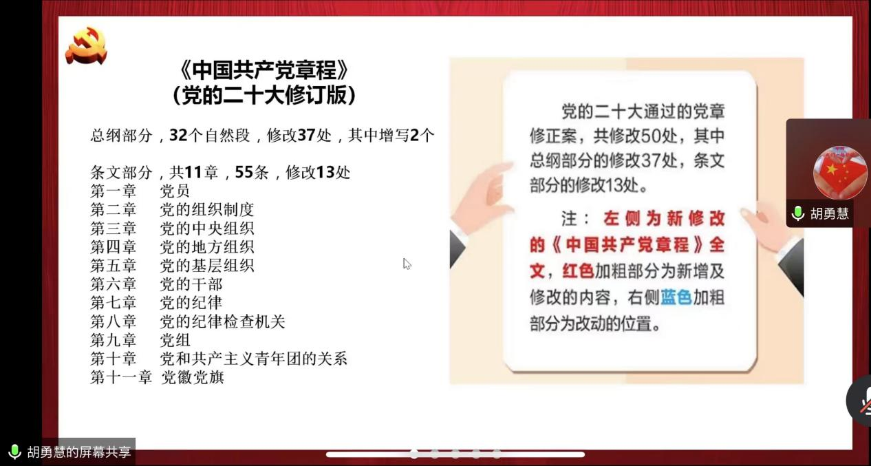 此次专题学习是支部学习贯彻党的二十大精神的重要做法之一,对于支部教师深刻学习领悟二十大党章修正案具有重要作用,支部也将继续坚持多种举措并行的学习安排,建设学习型党支部。