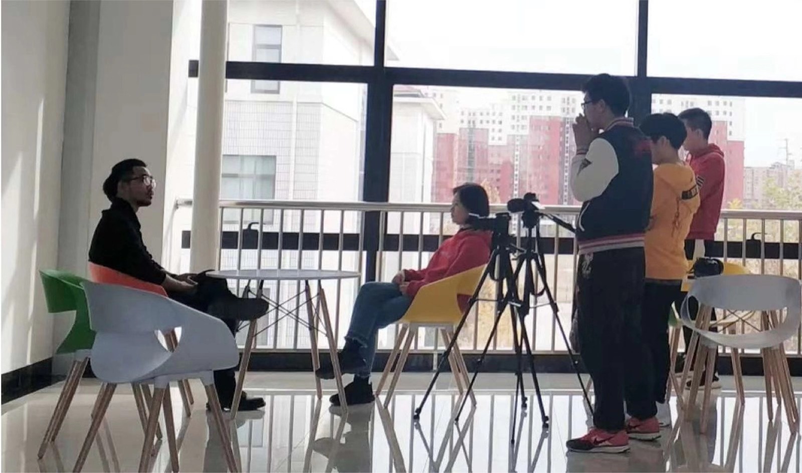 交流活动中,高文豪学长向同学们讲述他的毕业影片创作经历,就创作选题、灵感向剧本转换、拍摄手法等问题与同学们深入交流,与师生分享自己在美期间执导的短片“The Swamp”获得 Best Shorts Competition电影节最佳短片和LA Shorts Awards电影节最佳短片以及他与校友Pantheras Freedman因共同指导“Cage”获得International Independent Film Awards电影节最佳导演的经历,分享了美国影视类专业日常教学与自学形式,得到老师与同学一致好评。交流活动结束后,学部专业社团UTV校园电视台的记者们对高文豪学长进行专访,并邀请学长回现代传媒实践教学中心参加专业活动。