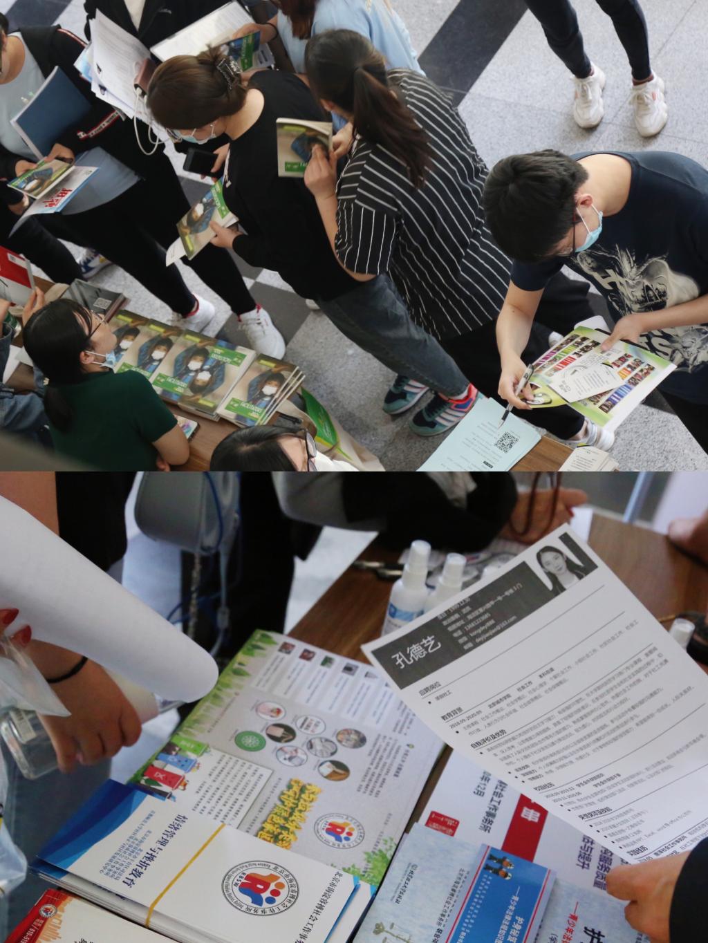 学生通过参观各单位的宣传展示了解机构目前对于实习和就业方面的需求,不少学生还提交了准备好的简历和自荐信,积极与招聘人员交流。在双方的互动交流中,学生身临其境的感受到当前行业的人才需求现状,也更加明确了自己的实习意向和就业方向。