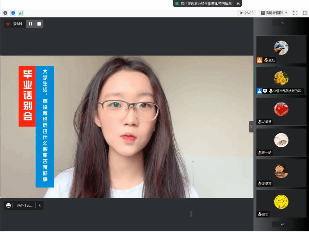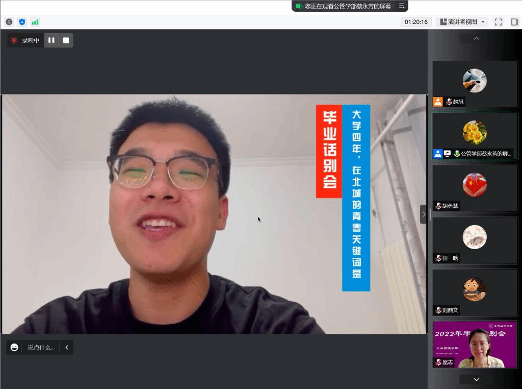 最后,在毕业生的互动视频中,毕业生和老师们相互道别,祝愿大家前程似锦,未来可期!